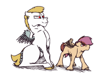 Another commission for this time with Playblitz in a fit of rage after his fiance Siren Bliss has been injured. Someone's about to get bucked.ponies not mine