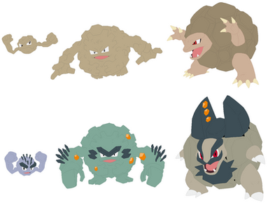 Very interesting Rhino Pokemon. Rhyperior is particularly impressive looking. I like the flavour text that they can shoot Geodudes out of their arms as projectiles, it would have been cool to see that in the Anime or something.
