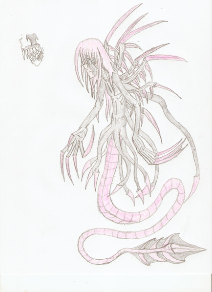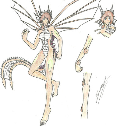 Ok, since the Category system goes and changes what I've put as the category for some reason, I hadto put the one I usually use, so don't wonder.Here's the second request picture of Oliver Triscuit's character Ariana Lamport. Here we see how her genetical code changes and mutates in a dramatic way after she receives some damage, the infected cells reorganizing themselves to heal the received wounds and to create protective chitin over the vulnerable spots. This is also more evolved battle-form which, despite the grown size and heavy-looking chitin plates, is actually quite nimble; the 2nd form has scorpion-like features due to the effect of teh yet unknown T-Virus variation, and thus creates the bestial, inhuman look once it combines itself with the T-Veronica. The second "battle form" of Ariana's is able to quick, violent attacks, and like scorpions do, even able to climb a wall or surface or a rock upwards.
