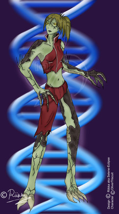 Finally got time to sit down and finish the final request. Studies, studies...^^"Here's is then Ariana in her third and ultimate form. After receiving enough damage strong enough to threaten her, the mixture of T-Virus and the unknown virus automatically reacts in very rapid and dramatic way to alter her cells and physical structure in more endurable, if less humane form. The transformation clearly shows out the scorpionish look, with very flexible yet hard chitin covering most of her body, and with a powerful stinger at the end of her tail. Possibilities to get poisoned by it are very certain, and though she looses some of her manoeuvrability due to her wounds and heavy body, she can still move somehow, and poses quite a formidable threat to anyone near her. Her ferocity has crushed out most of her humanity by now.