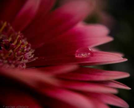 Wow. That is so cool. I love how the red of the flower dims to a black background. The waterdrop, well, im speechless~ I have a shot quite alike tt in my gallery