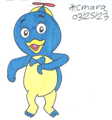 Pablo from the Backyardigans. His beak sucks thanks to my crappy coloring skills.Backyardigans are created by Janice Burgess.