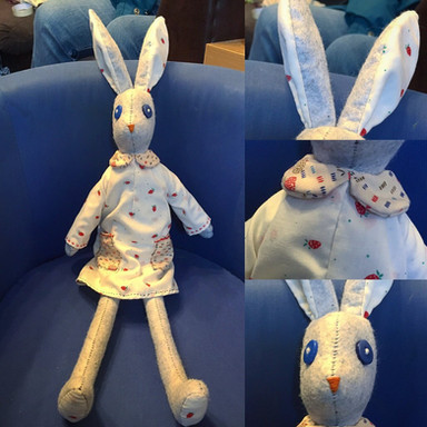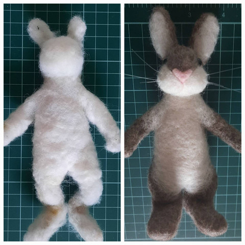 Don't get me wrong, because he'll look awesome when he's finished, but with no eyes, a missing arm and skinny little woollen tentacles, this is one creepy bunny! And I mean that in a good way.