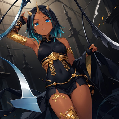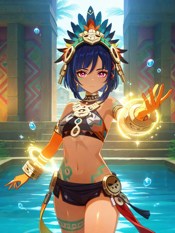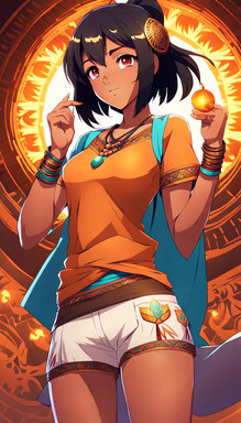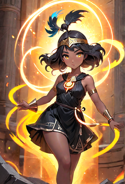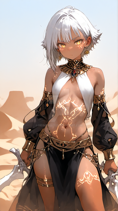 #anime #animegirl #magic #ai #egyptiangirl #originalcharacter #smallbreasts #tanlines #yelloweyedgirl #streaked_hair #aiartwork