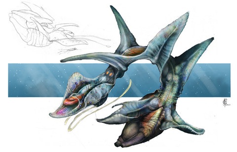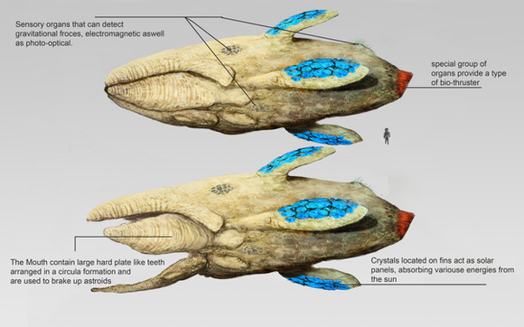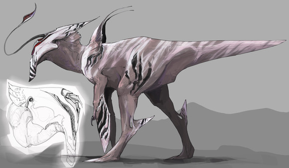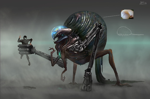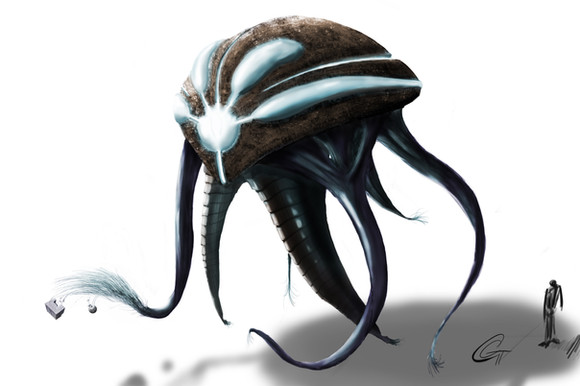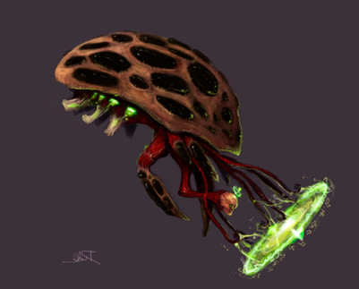 Design for an alien organism that walks on the top of its fungul forest canopy, the planet has low gravityrough ideas, took around 2 hours