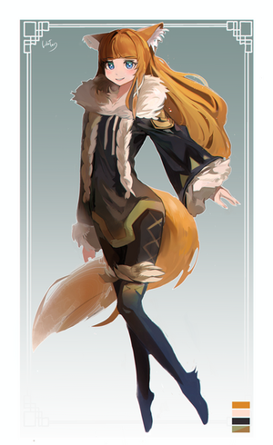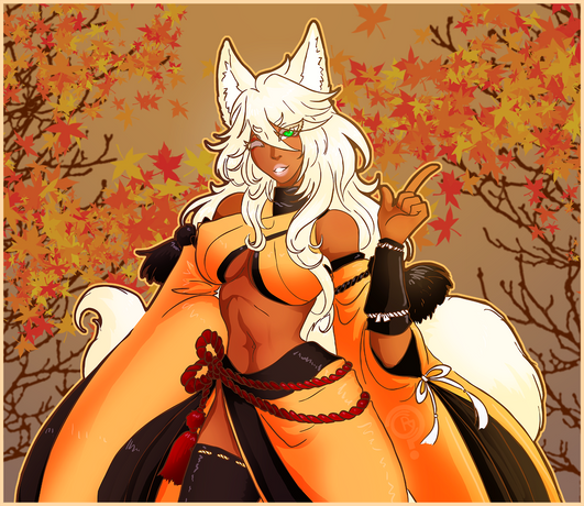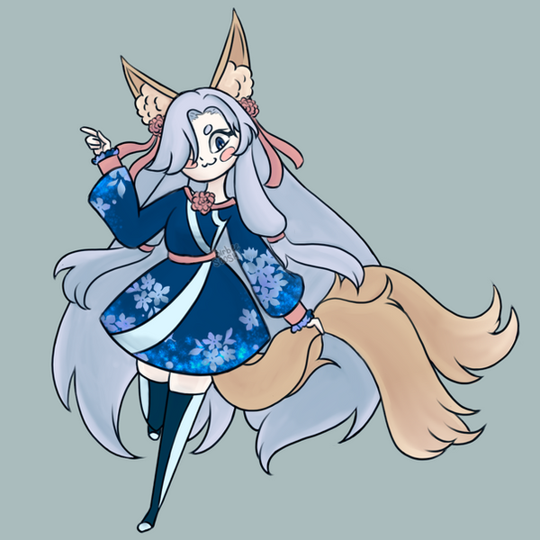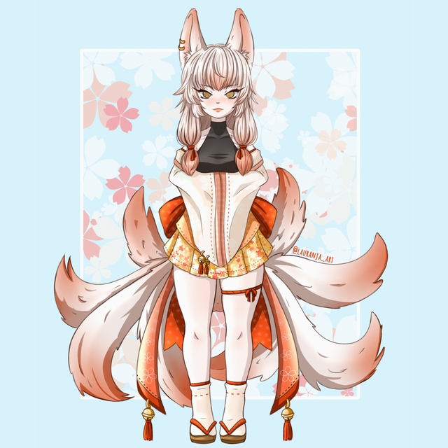 #anime #animeoc #flowers #foxgirl #kimono #kitsune #kitsunemimi #yellowkimono