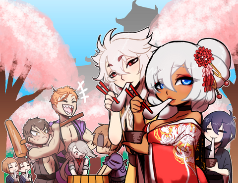 So I was doing kimono sketches and this ended up happening. I ended up having way too much fun making all the patterns. Yep every single pattern was done by me. Took forever.I still like using flat color with lots of detail in things like fabrics and hair. Not sure why. I was also wanting to draw Haru's little sister, Nara named after the Nara period in Japanese history. I ended up taking the color scheme from Momoe and using it for her.