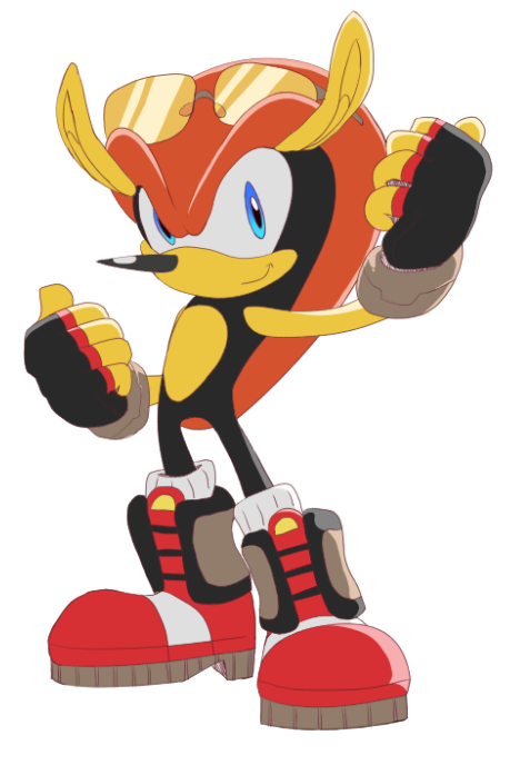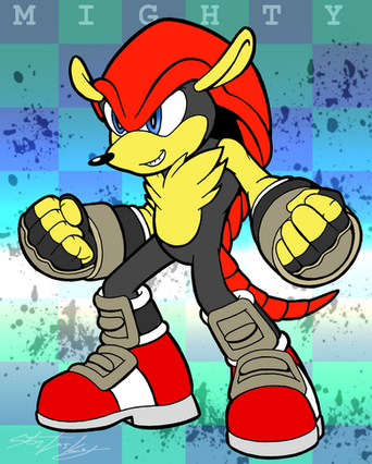 RIDERS MIGHTY! I've seen others re-imagine Mighty in Sonic Riders, but I wanted to have my own go at it. Here's a alternate version without the shading so you can see a better look at his design. Fun fact: His shoes are a mix of his classic red shoes and his Archie boots.