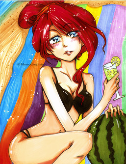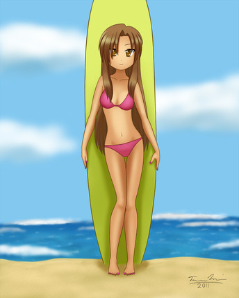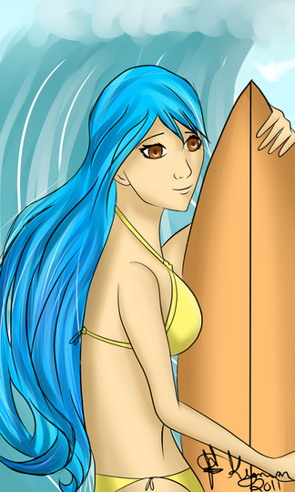 No pos, no se si ya paso la fecha para el dibujo o no, pero al menos subo algoMi niña detesta los bikinis que usan todas las chicas porque no se puede nadar a gusto (?) Asi que opto por algo mas deportivo y ademas se ata el cabello /o/