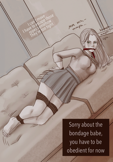 She heard sounds from outside this room and started to shout with muffled cries, confused about why was she kidnapped and what does her kidnapper want, she doesn’t remember anything from yesterday.