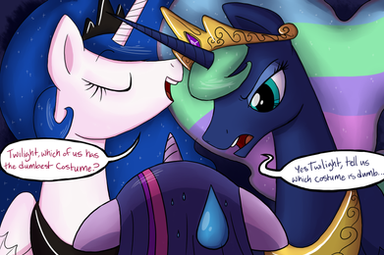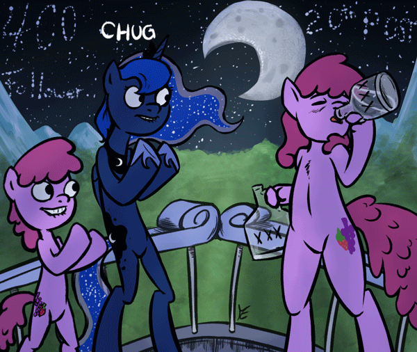 with the drunken princess of the night, AKA Luna. If you want you can visit it here: [link] and ask her and I will come up with a funny response from the tipsy princess.