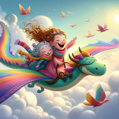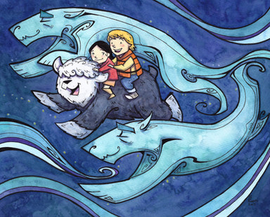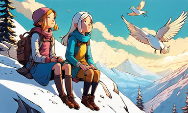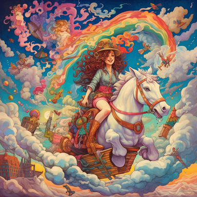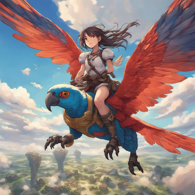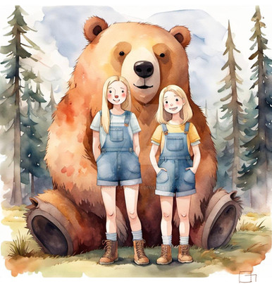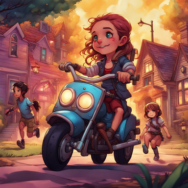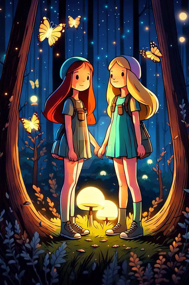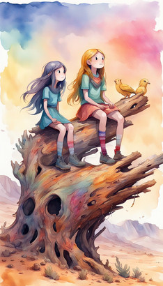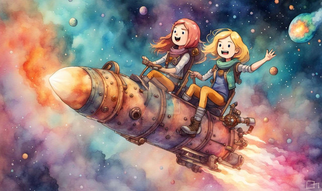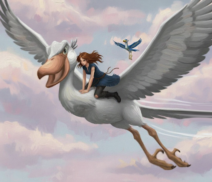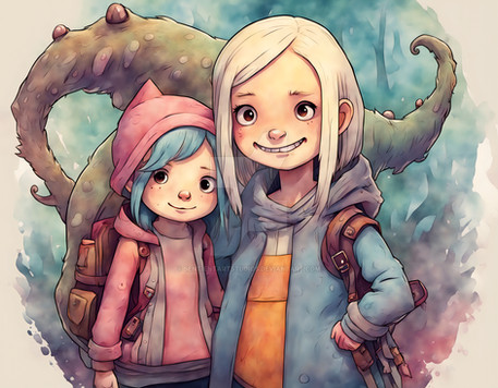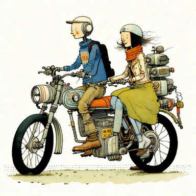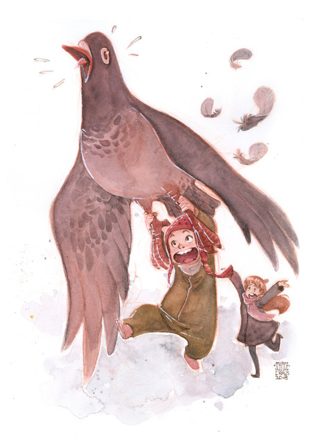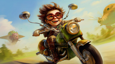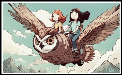 #cartoon #digital #fly #girls #motorcycle #owl #sisters #surrealism #watercolor