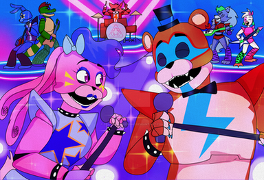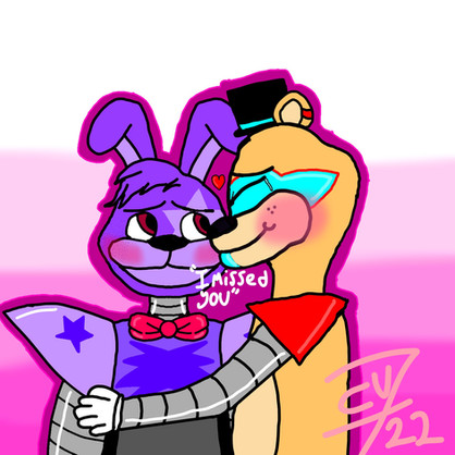 Haha totally forgot to post this yesterday lol (yes, that is in fact glamrock bonnie's hand, he was trying to pat freddy on the back and hit too hard. Whoops :3)BTW, not to shamelessly plug this, but I actually have a fnaf security breach fic on ao3 with my oc in it that just so happens to have a happy ending. It's called Mechanical Family(considering how popular the picture i made with the same name is, this should be a little more clear)