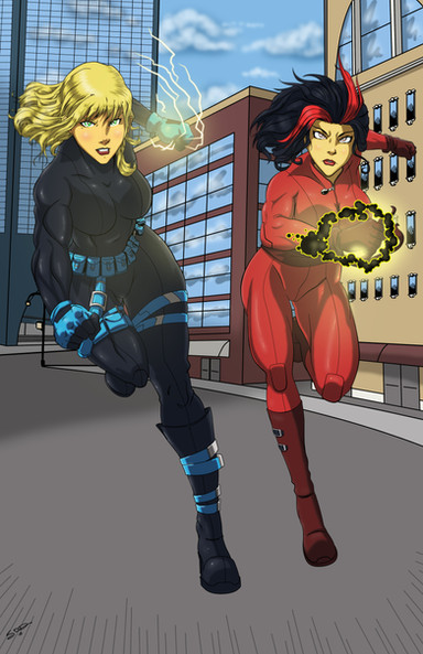 When these two clash, it's a battle of brawn vs brains. Rai's electrokinetic powers make her a powerhouse in battle, relentlessly attacking her opponents with a constant barrage of electrical attacks at both long and close range. To make her even more dangerous, her lack of compassion towards her adversary, and restraint with her powers makes her fighting style all the more vicious, brutal, and harder to counter. Rai is also the more faster and agile between the two heroes, with Rai having an athletic history before going into the gaming industry, but still keeping in shape. Also, while she may not have been trained by a professional hero, Rai is a fast learner, and has learned to use her powers in a number of ways, making her unpredictable in a fight. In terms of raw fighting power, Rai certainly has an edge, but that doesn't mean our favorite red-headed hero is gonna be a pushover, not by a longshot. While Becky may not be as athletically gifted as Yui, having spent more time reading comics and writing fanfiction than playing sports, she has been trained by both Devil Cat and Omega in close quarter combat, making her the better trained fighter against Rai, who has little to no combat training, preferring to rely on her electrical attacks to overpower her opponents. Atomic Girl is also more experienced, while both girls are of similar age, Atomic Girl was one of the en-humans created during the Nebula Incident which came almost a year before the Catalyst Incident that created Rai along with the rest of the second wave of en-humans. During that time, Atomic Girl has fought alongside the Sentinels against some tough enemies, such as Cassandra Talon, Metalla, King Zidane, and Catalyst. However, Atomic Girl's greatest advantage over Rai is arguably her quick-wit and intelligence. Now, this isn't to say that Rai is stupid, she's intelligent in her own right, but against someone who's memorized the entire periodic table, and excels in math and science classes, she really can't compete. Using her ingenuity, quick-wit and subatomic manipulation powers, Atomic Girl is able to come up with innovative solutions, such as creating weapons and armor, or altering the environment that would give her an edge against her opponent. While she may not be able to match Rai in raw power, she can definitely come up with ways to defend herself against Rai's electrical attacks, such as using her transmutation powers to create insulated material for her suit, or making weapons out of material that doesn't conduct electricity, such as rubber or plastic. However, Atomic Girl has never faced someone like Rai, and she'll need to stay on her toes if she's to hold her own against the electrokinetic antihero. As to who would win this fight, honestly, it could go either way, but I'll let you be the judge.