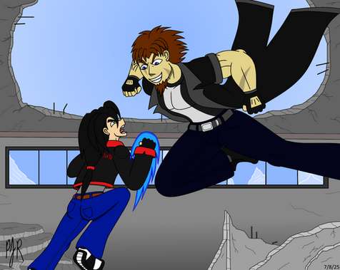 While Becky's reputation as Atomic Girl is steadily growing, she already has quite a reputation in the local gaming community. She's won a few video game tournaments, as well as a Battle Beast TCG tournament, earning her the nickname "The Red Queen" among other gamers. While she's certainly made a name for herself in crushing her competition, there's one other local player who has the skills to challenge her, a teenage boy who goes by the name "Twitch". Twitch and Becky's intense rivalry is well known in the local gaming community, and is always a spectacle to see when these two clash in the arcade or in tournaments. These two are constantly trying to one up each other, trying to prove who was the top player in Sapphire City. Some of these include Becky beating Twitch in the semi-finals of one of the gaming tournaments that she won, while Twitch defeated her in a couple of card tournaments. Things really get intense when these two meet in an arcade. Patrons watch as these two compete against each other, trying to beat each other's high scores, while constantly trash talking each other. This was just a funny pic I decided to draw, depicting more of Becky's personal life and hobbies outside of her Atomic Girl persona.Related content