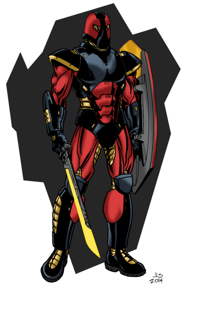 The design is great and he looks ripped right from the design page for an animated series. As for his backstory 'how could this possibly goΒ wrong' -Someone at Talon Corp. Most likely.