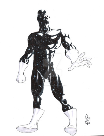 Void is arguably one of the most powerful characters in the SCU. He possesses the ability to manipulate dark matter in a variety of ways. This was a tricky power to lock down, not only because it's extremely powerful, but I try to find a good blend between fiction and science. Since dark matter in real life is "invisible", I decided to make it visible for the sake of the story and the character. One of the ways he can use this power, aside from the typical blasts and beam attacks, is that he can create constructs from dark matter (a good visual example would be Green Lanterns) with the only limit being that he understood the mechanics of the construct he was making. He can also manipulate the dark matter that makes up his body as well, allowing him to grow and shrink, change his density, and even make copies of himself. With this power, Void is capable of taking on the entire Sentinel Corps team all on his own. However, while he possesses near godlike power, he is far from invincible. His first major flaw is that, manipulating dark matter can taxing on his mind, as it is the only thing that is keeping his dark matter body together. Overuse of these powers could put too much strain on his mind and cause his body to disperse, requiring him to reform once more. Which brings me to Void's biggest weakness, his mind itself. Samar is a good person at heart, he does not want to hurt anyone, but he can't bear to live as a mass of dark matter. His lingering morals prevent him from taking innocent life, and as such, inhibits his true potential. His mind also affects his body in other ways as well, such as feeling pain as a human would, despite his body being made of dark energy now. To put it simply, while his mind keeps his body together, it also acts as an inhibitor.