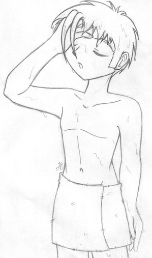 This is... oh my... O.O And he is so... wet! XD And... WOW, the motion - droplets falling from his hair when he moved his head...