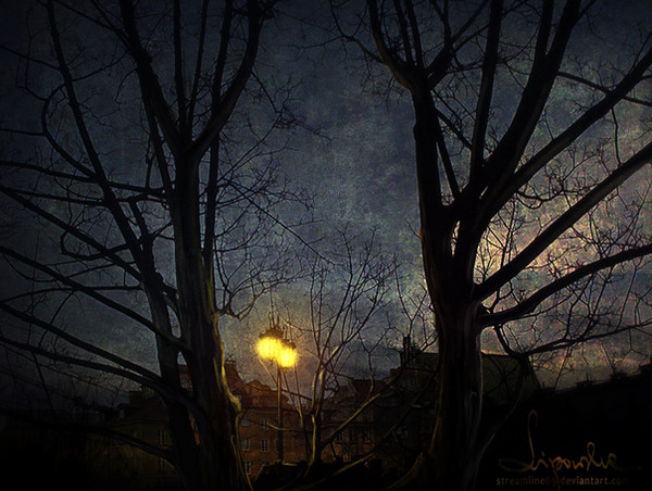 wow - this is a great piece The trees and the moon could be a painting all of their own.