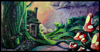 I used acrylic painting for this picture. Indeed i use water to enlight the drawing!!! The use of water on the Moon/sun contrast even more with the texture i gave to the houses. Thank you for taking to comment on it!
