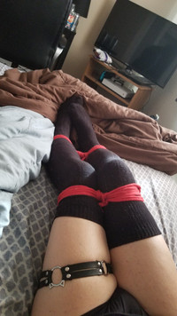 #bondage #bound #legs #ropebondage #ropes #thighs #tiedup #boundgirl #thighhighsocks #ropetied #stripedsocks #overtheknee