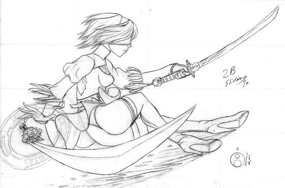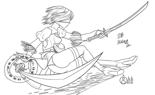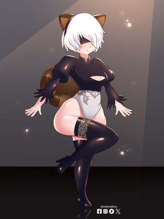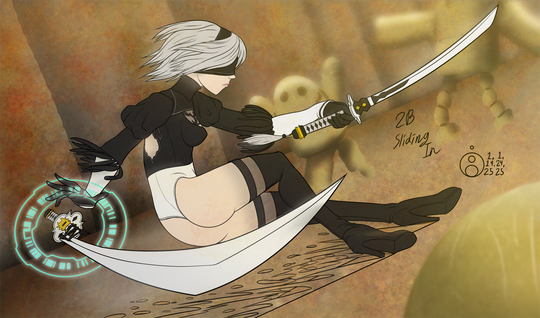#fanart #videogamefanart #sword #nier_automata #squareenix #2b #ass #leotard #skirt #sliding #swords #2bnierautomata #2b_nier_automata
