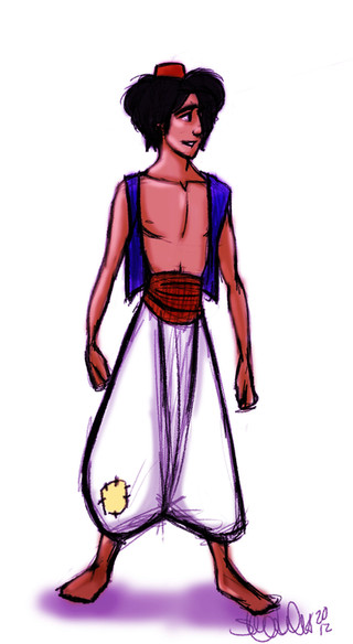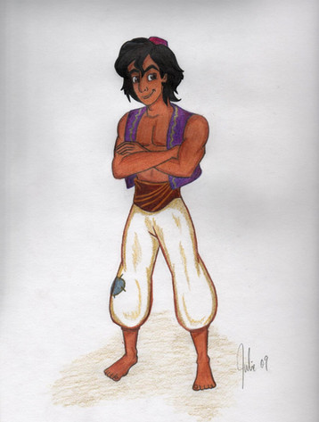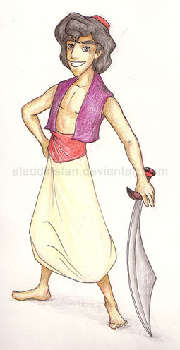 Aladdin looks soo cute in this picture! ^_^ You have done a great version of him, the pose and colors and everything are perfect. Absolute fav.