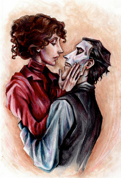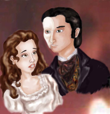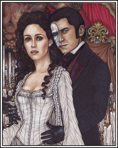 the expressions on their faces are so riiight. especially christine's. :3 i love the texture and the colors -- they really give it an eerie yet romantic atmosphere. ^^ prettyyy.