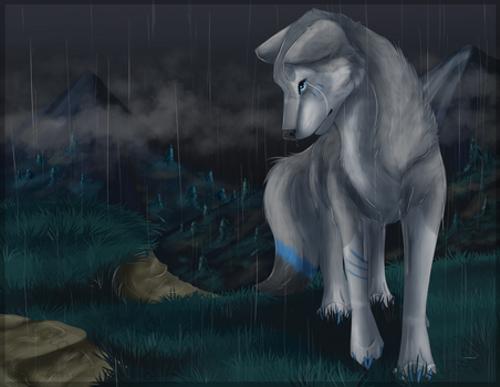 Comme déjà dis, je suis fan des champignons fantomatiques! x) Et la pose du loup est vraiment très sympa <3 Raw puis le ciel On pourrait jouer à imager les étoiles x)! Bref, un superbe dessin, pour ne pas changer <3