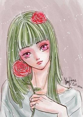 Hello! I hope that whoever reads this caption is having a wonderful day ^^ This character is my fictional character. It is my second digital artwork, and I experimented with new techniques and a different style.