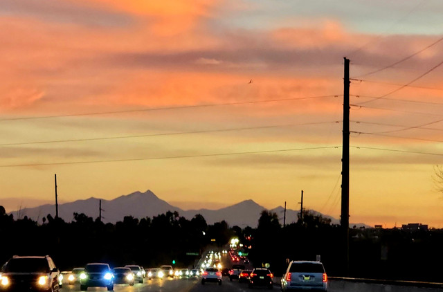 I like this one, despite the traffic and additional focus towards the ground. Or maybe I like it because of it. This was from 2015 so it's a while back now. It's almost magical. Dark clouds, colorful skyline, a smattering of traffic heading west into Melbourne.