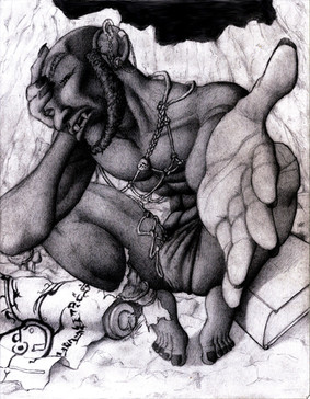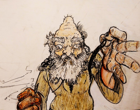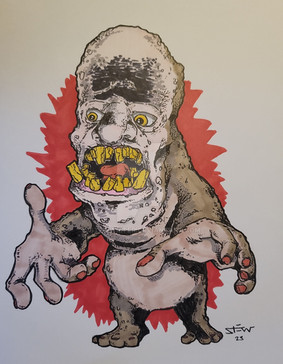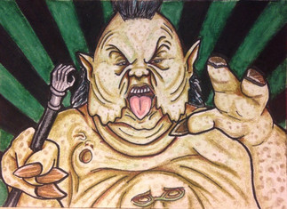 The Tokoloshe is a water sprite or spirit from Zulu stories in South Africa. They're created by witch doctors who gouge out their eyes and then bring them to life by inserting a rod into their head. Most of the descriptions I read were NSFW in nature - apparently they're very well endowed. This, however, is for a kid's card game. Anyway, they're tiny and there is a custom to put your bed up on bricks to keep the Tokoloshe from climbing up into your bed and biting off your toes. Among other things. Not being that familiar with the culture, I hope I got a good idea of one - let me know if not! Ink and watercolor pencil.See a time-lapse of the painting here: youtu.be/Bzz_Paull3Y