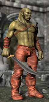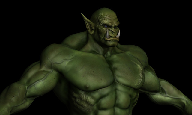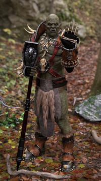 The Orc comes with a full set of berserker-style armor with nose ring and earrings, two unique texture sets, two weapons and a conforming hairstyle with numerous material pose-controlled variations, two eyebrow options and a morph for topknot shagginess.