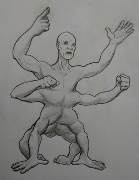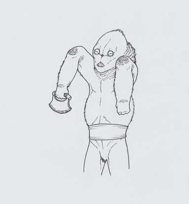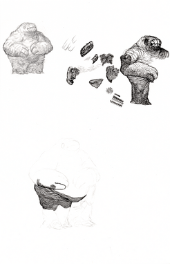 Primate with Arachnid with mineral water.This is an older one, but I cheated and went in with a Mars eraser, mostly on his hump. The bristles were too dark and it was messing with the shading. I'll put the sketch version up.