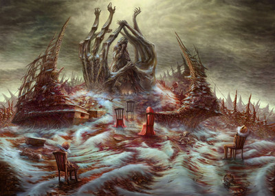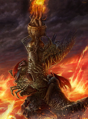 Have you heard of the artist Wayne Barlowe? He does the most spectacular hellscapes. Your work bears a striking similarity to his. I can also see influences of artists like HR Giger as some of your work has the same 'biomechanical' appearance/aesthetic.Β
