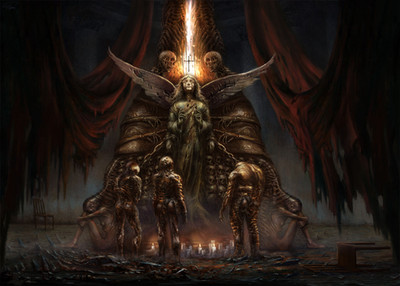 The stigmatas make it all the more creepy and foreboding...it's like an anti thesis of the traditional Crucified Christ image...great mastery of light and shadow and thorough attention to detail...simply epic!