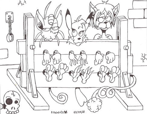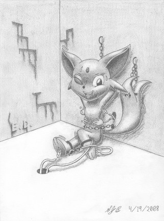 Ok, what's this? It's a monster from Yu-Gi-Oh, called Crystal Beast Ruby Carbuncle. I was inspired by drawing another crystal beast monster in bondage.I didn't date the pic, but as I drew it on the day of the set's sneak peek tournament, I must have drawn this around early August 2007. Something else I may ink and colour.