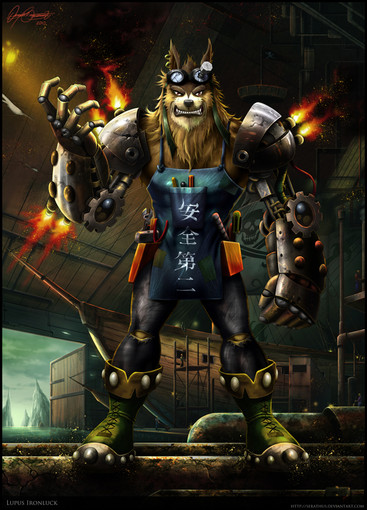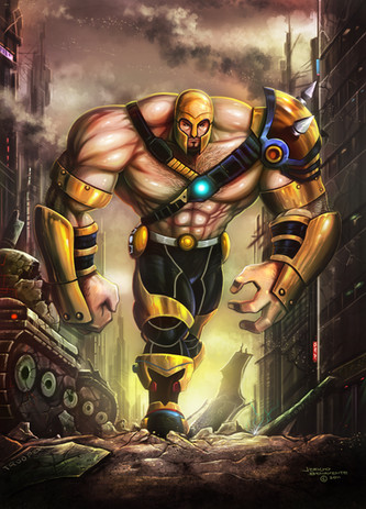 Besides working as a hero, Azunai is an inventor. Inventor is a general term that he likes to use since he works on a number of different projects that include: building power armor, designing weapons, providing prosthetic or mechanical limbs, designing personalized vehicles, and other fun projects like rocket powered gloves.