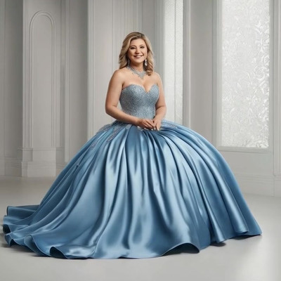 AndrewStuartJohnston - Young Bimbo Huge Boobs Pale Blue Silk Prom Dress S [🤖]