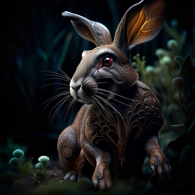 #artwork #dark #decorated #enchantedforest #fairytale #fantasy #goblin #illustration #ornate #rabbit #woods #aiart #wombodream