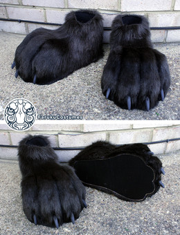 I see, well if you wanted to make another fitted pair like those its not too hard! I just do a hand tracing with my fingers spread out as far as I can, then I draw around the tracing about 1/2cm to 1cm around to give a little extra room for going around the fingers when you sew the two pieces together! Can be tricky to sew since you have to tuck the fur in such small spots at the finger tips but it works decently well for making fitted paws! Also gotta make sure to not taper the wrist too much or you won't get your hand in. Matrices hand paw tutorial has a decent pattern to start! You can always take it in if its too big too.