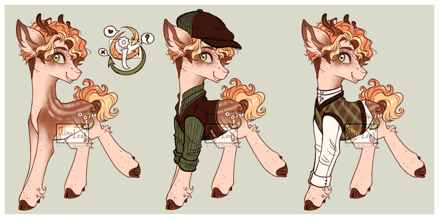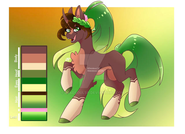 Adopted by Spook--HouseThis adoptable was one of the more simpler designs, and I really appreciate how much love it has gotten. I love to give the adopter a chance to come up with their own back story and such to the character, so I can't wait to see what Spook--House has in store for this oc design. However, I did give one little aspect of the character away... it's cutie mark. I made it into an ivy, something very much inspired by spring since many leaves and new plants begin to revive and bloom around the spring time.