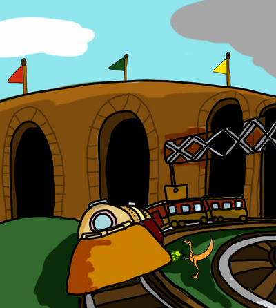 commission forMore Dragon trains, this time, with Ember as a Mallard with a train station in the Dragonlands.
