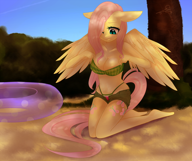 #anthro #bikini #boobs #breasts #crab #fluttershy #swimsuit #bustly