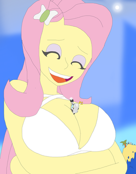 Would've been even funnier if Flutters was wearing one of those minimizing tops and her it got cut, her breasts suddenly boomed turning out to be bigger than the top made them appear to be.