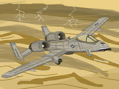Malloy A-10A Thunderbolt II flies over the desert in search of tanks to bust, but sadly nothing can be found but dirt, empty roads, and more dirt. Maybe something or someone has got to his prey before he did? *cough*Stone*cough* well whoever did it better be out of this Hog's range.Well here's my A-10 character I said I would eventually draw... Happy now? Stfu! LOL!