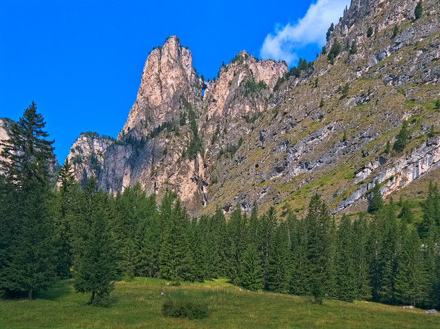 From left: Rosengarten, Vajolet towers, cliffs Larsec. Dolomites, ItalyRelated content