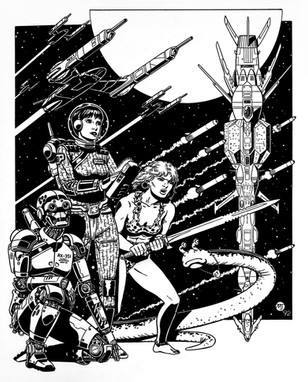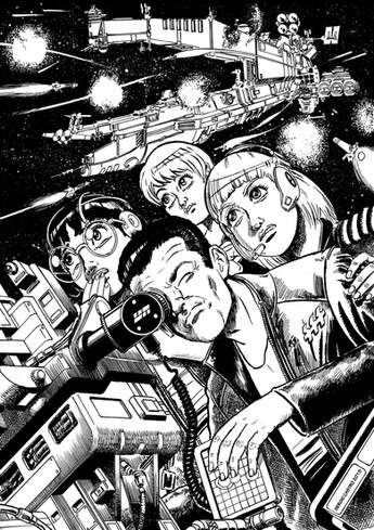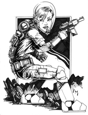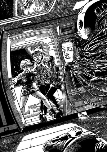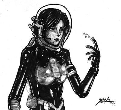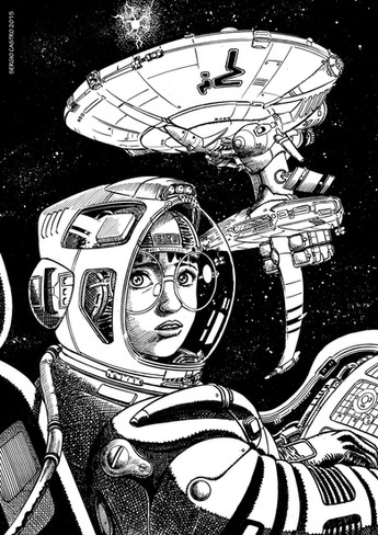 Another drawing for "The Operators" series: "Orbital Routine". Ink on paper.Otro dibujo de la serie "Los Operadores": "Rutina orbital". Tinta sobre papel.