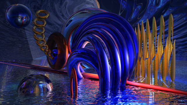 Bryce 7.1 Pro (no postwork)I was in a very bad mood after trying to put a sphere somewhere on MB3D. Took a glance at one of Hal Tenny's tuts. After many tries, only managed to place a silly ball nested on a "vegetable". Further tries were useless, could not repeat it. Frustrated, opened Bryce just to play with it. Those who know the program are aware that placing a sphere or lots of them is not a science, just a natural flowing creative process.