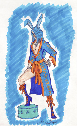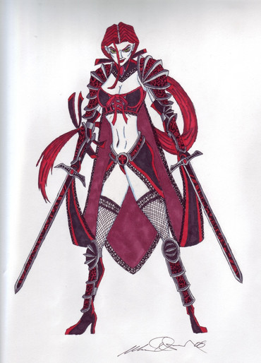 Still, this is one awesome drawing. I love how you captured the folds of her clothes and the wrinkles and muscles. The way you colored it adds to the smoothness of her hair and clothes. She looks very elegant, even more thanks to your coloration.